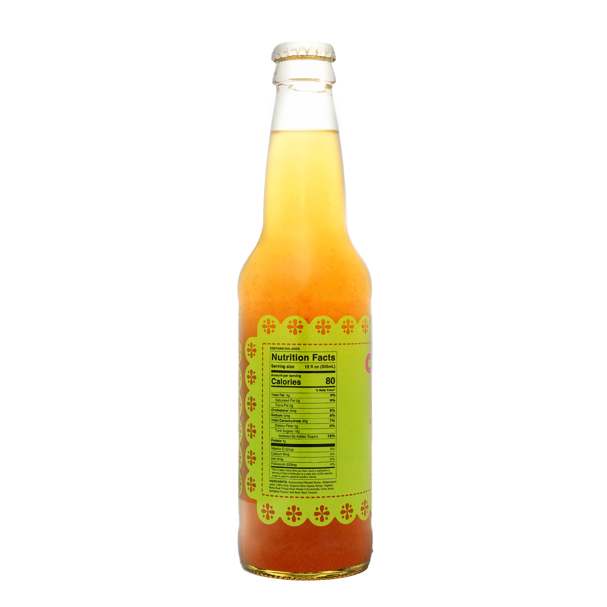 Ingredients: Carbonated Water, Damiana Lime, Prickly Pear, Watermelon, Agave